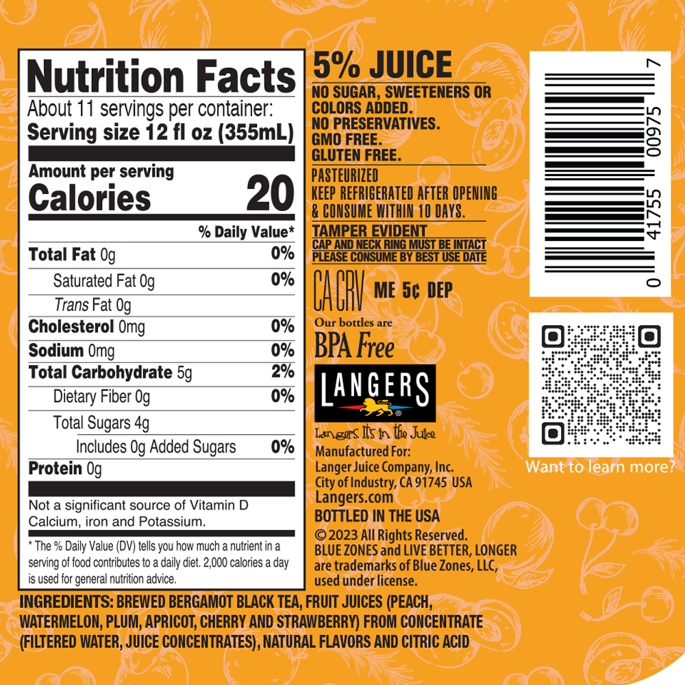 128oz Blue Zones Unsweetened Bergamot Black Tea